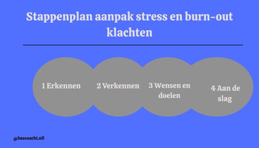 Het is dan tijd om in beweging te komen en negeer de klachten niet. Dat is de eerste stap. Het erkennen van de klachten. Dat kan zijn hoofdpijn, lusteloosheid, geen overzicht meer hebben of aanmerkelijk minder plezier in het werk of privéleven. Vaak zijn er fysieke klachten en die kunnen divers zijn, denk aan pijn in je lichaam, minder concentratievermogen of slecht herstellen van griep etc. Je lijf geeft een signaal en dat kan heel verschillend zijn.
